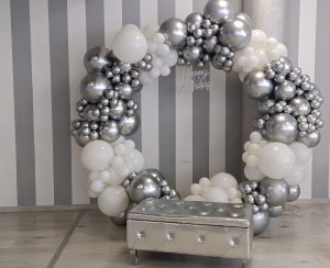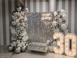 ALLESTIMENTO 30 ANNI COLORI ARGENTO E BIANCO TANTA LUCE PER FRANCESCA Per i 30 anni di Francesca l’allestimento prende forma attorno a una splendida parete