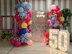 ALLESTIMENTO 5O ANNI TEMA “ANNI 80” BACK TO 80’S PER ROBERTO Roberto ha scelto gli anni 80 per festeggiare i suoi 50 anni. Entrare in
