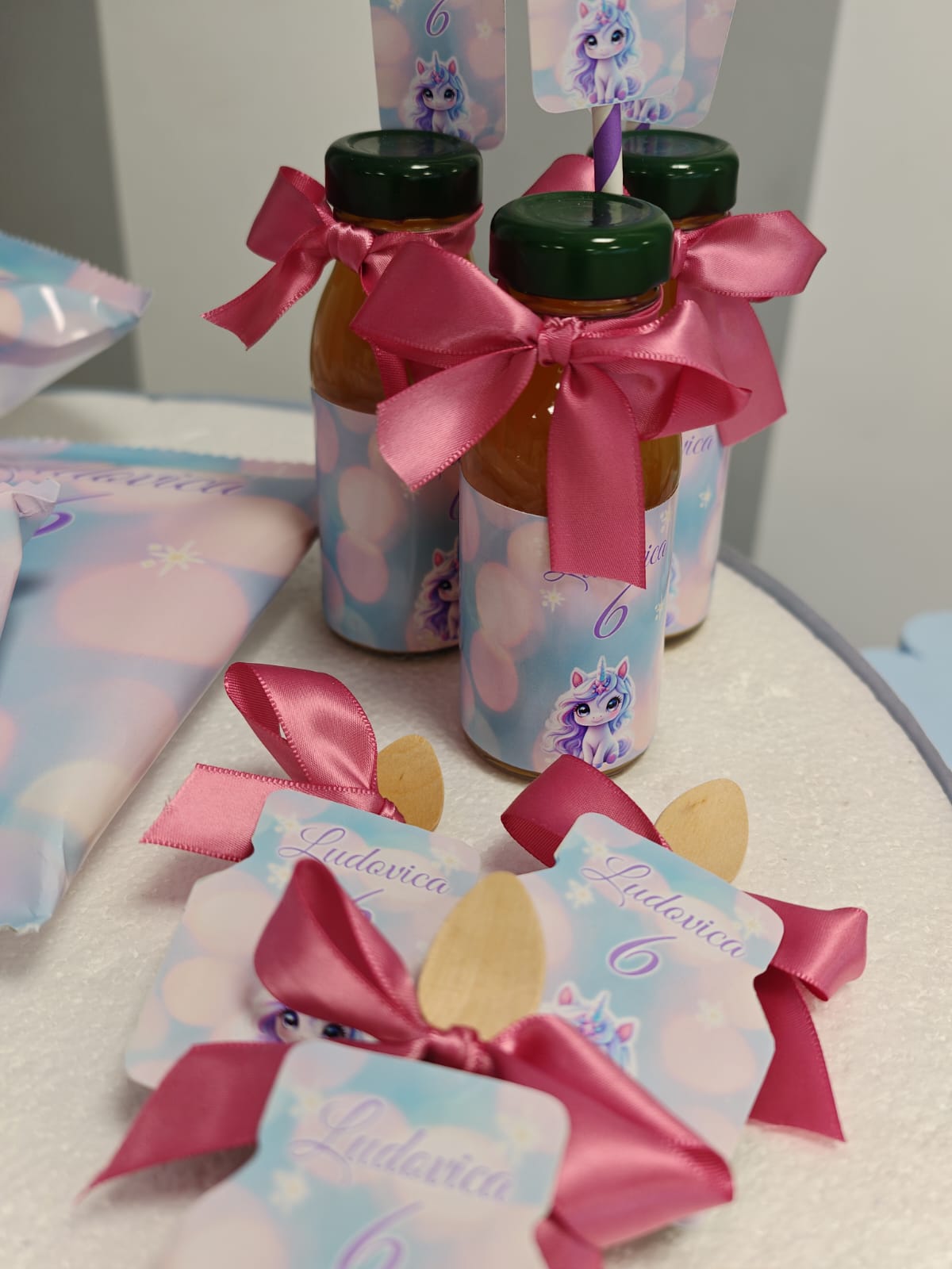 Un allestimento incantato che trasporta i piccoli ospiti nel magico mondo degli unicorni. Un morbido peluche a tema accoglie i bambini con dolcezza, diventando subito il protagonista delle foto ricordo.